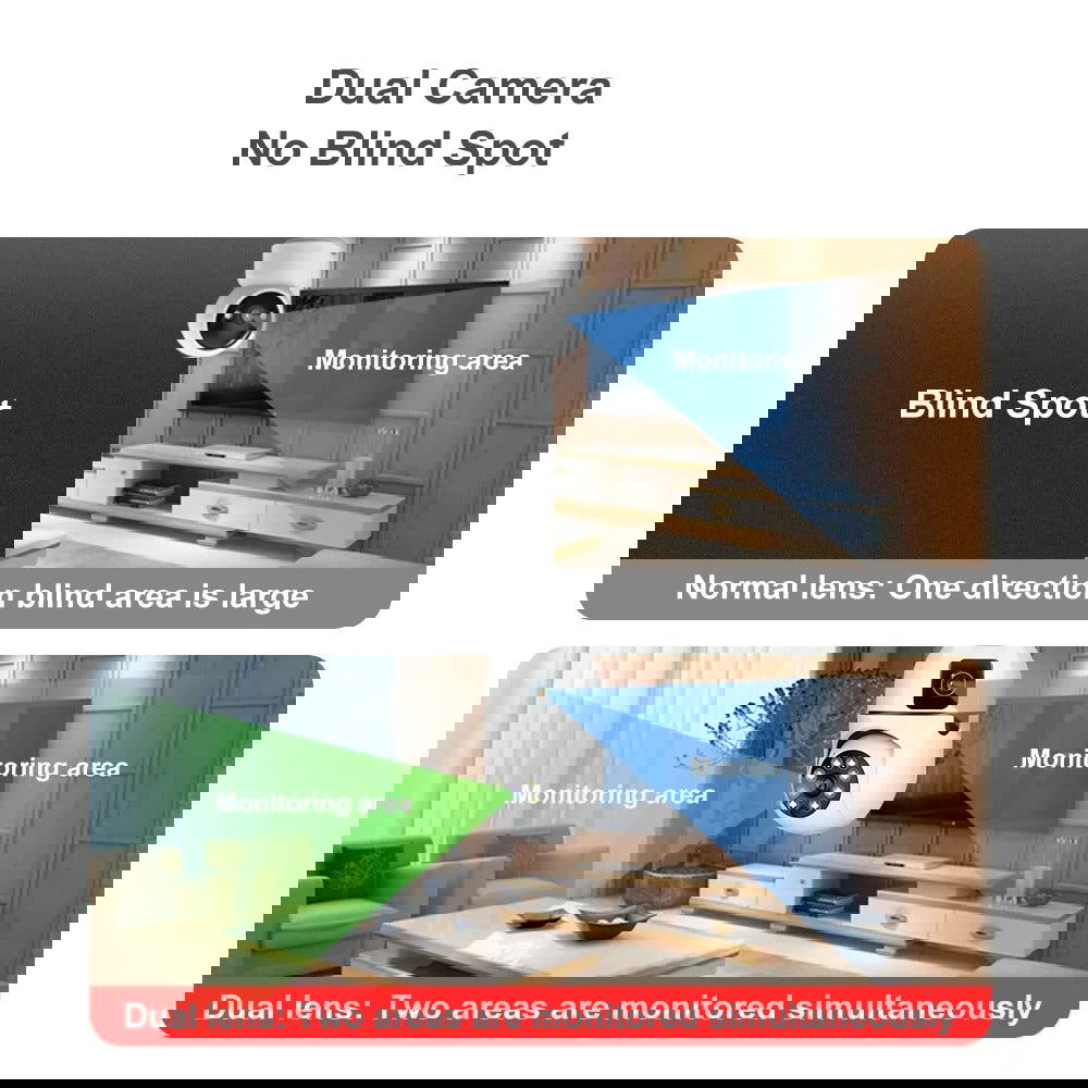 Dual Lens Innovation: Features a Dual Lens Design that captures a wider area with a complete 360° panoramic view.